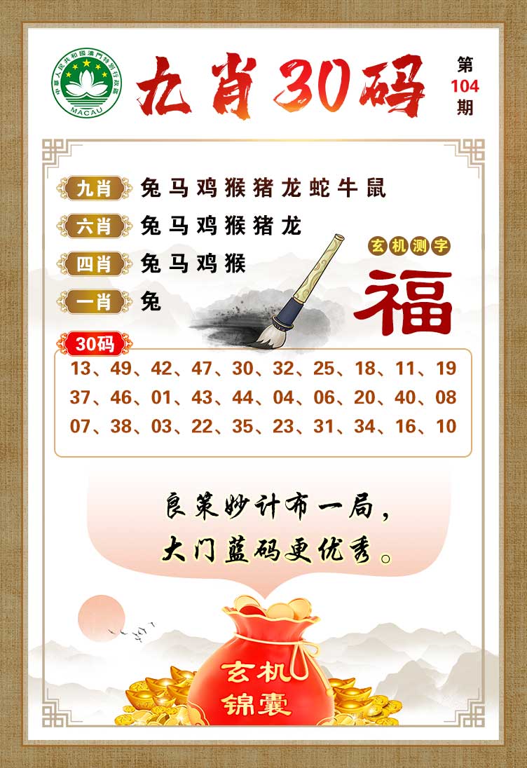 | 104期:【吉美凶丑】=《吉美肖》开:马01准 |